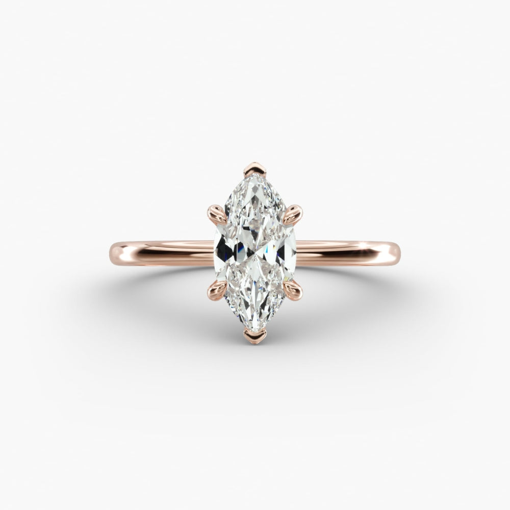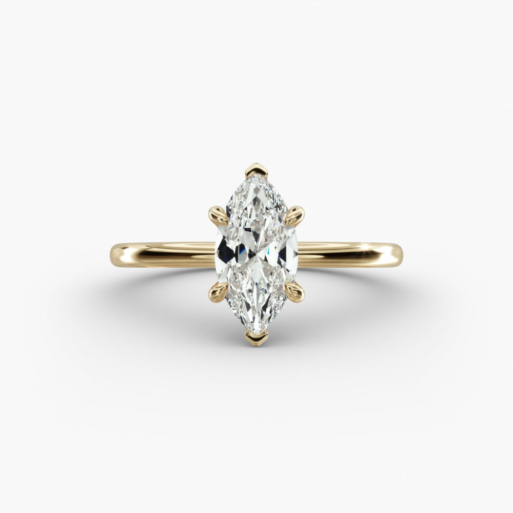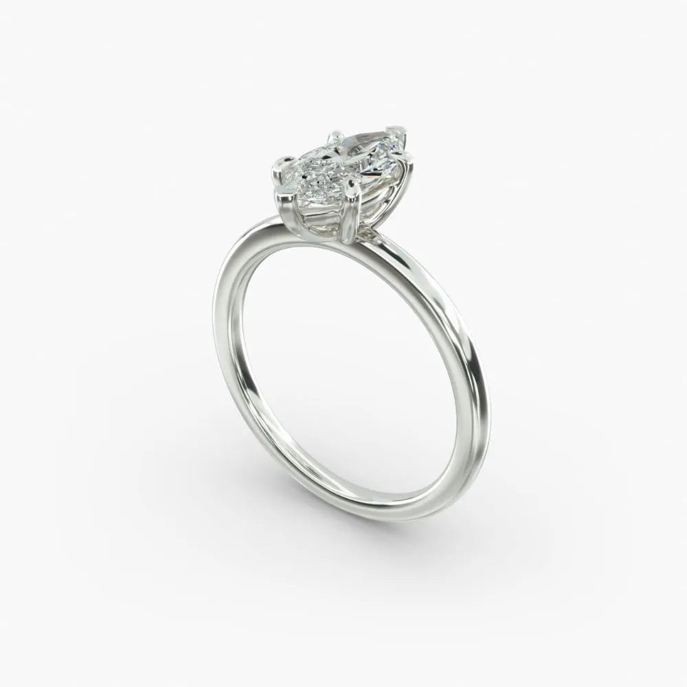 Anillo de compromiso solitario en oro 14K con diamante de laboratorio Marquise con certificado IGI de 1.00ct. Calidad E VS1 EX, con corte excelente y brillo impecable.